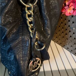 Gorgeous Michael Kors Uptown Astor Tortuga Studded Black Leather Large Hobo Bag EUC! $498. Features black leather with studded details, top magnetic snap closure, leather hobo shoulder strap. Attached hang tag. Interior is lined with ivory fabric and has a zip, cellphone, and 2 multi-function slip pockets. Approx. measurements: 14"-17"L X 14"H X 5"H. Note: all measurements are +/- 2 inches. Some flaws on the handles. And is missing half of the snap Please see last picture. In very good condition! Beautiful, soft bag great leather. This comes from a smoke free home.