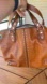 Features brown leather with studded details, top magnetic snap closure, leather hobo shoulder strap. Attached hang tag. Interior is lined with ivory fabric and has a zip, cellphone, and 2 multi-function slip pockets.