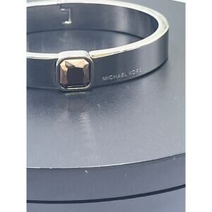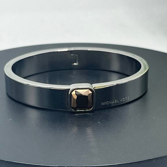 Michael Kors Urban Rush Silver Hinged Square Cut Center Stone Bangle Bracelet
