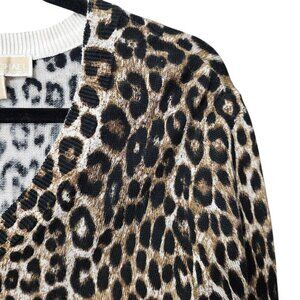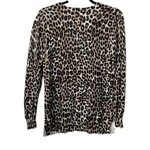 Michael Kors V Neck Animal Print Leopard Knit Long Sleeve Top Size S