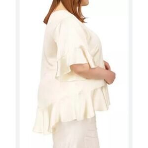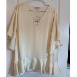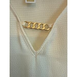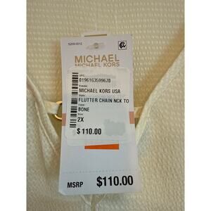 Michael Kors V-Neck Gold Flutter Chain Neck Polyester Ivory Top 2XL
