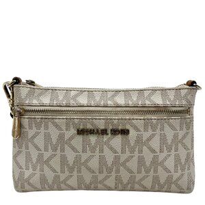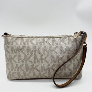 Michael Kors Vanilla Monogram Leather Jet Set Logo Wristlet