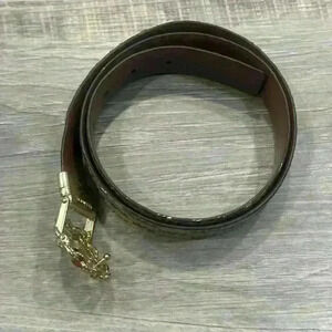 Michael Kors Vanilla/Brown Signature Reversible Gold Chain Logo Belt GUC READ