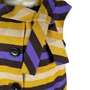 Michael Kors Vest Top Womens 8 Golden Yellow Purple Brown Stripe Lined Tie Neck