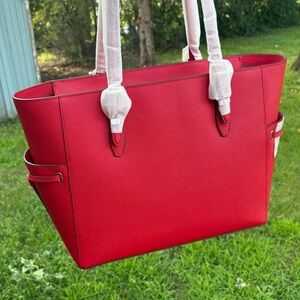 Stylish and bold, this red tote from Michael Kors is a must-have. Features a sleek design with signature charm. Perfect for any occasion.