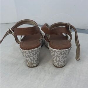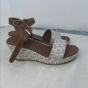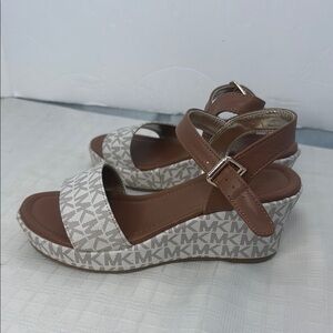 Stay on trend in these fashionable Michael Kors wedge sandals. Pair them with jeans, skirts, leggings and more. The high wedge helps you stand out during weekend adventures out with friends.