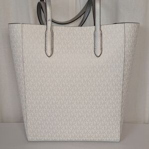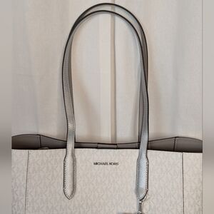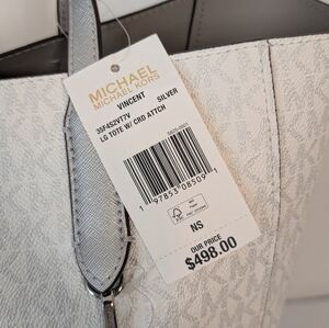 Michael Kors Vincent Large White And Metallic Silver Canvas Tote Coin Pouch NWT