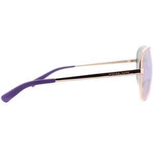 Michael Kors Chelsea are a must-have for any fashionista looking to add some sparkle to her look. The pilot shape and metal frame exude timeless elegance, while the solid color purple mirror lenses inject a touch of fun. Crafted in luxurious rose gold metal with matching temple tips, these sunglasses offer both style and comfort.
