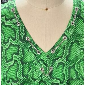 Michael Kors V-neck Python Print Green Tunic M Long Sleeve Silver Chain NWOT