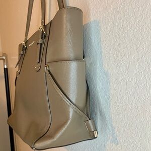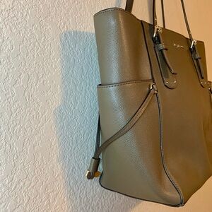 Michael Kors Voyager Crossgrain Leather Large Tote Bag Truffle Gray
