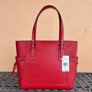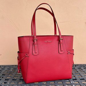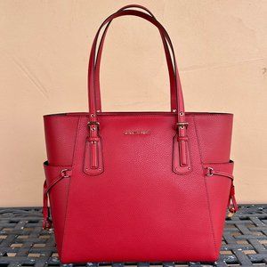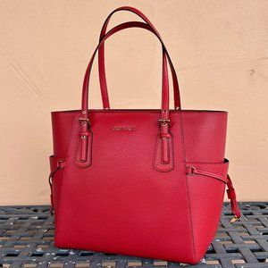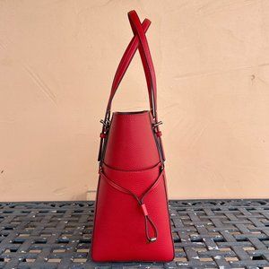 Michael Kors Voyager Drawstring Travel Tote Shoulder Leather Bag Red Flame