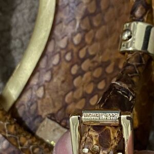 Michael Kors WOMEN’s Brown & Gold Snake Embossed Leather Slingback Flat Sandals Sz-8/38.5