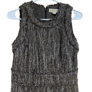 MICHAEL Michael Kors WOMEN’s WOOL BLEND BROWN MULTI FRAYED TWEED MINI SHIFT FALL/WINTER DRESS Size-4