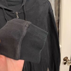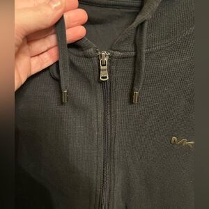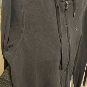 White is half zip- had nylon accents in front pockets and on hood- barely worn