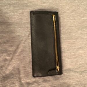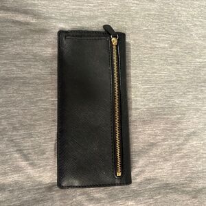 This a nice black Michael Kors wallet and the Michael Kors emblem is on the front and a zip pocket is on the back. It has numerous compartments in it and is in good condition.