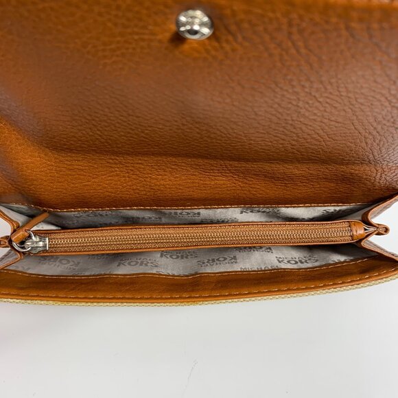 Michael Kors Wallet Brookville Carryall Beige Brown Fold Over Card Holder