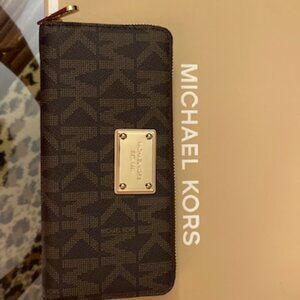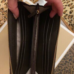 Brand New! Never Used! Michael Kors Wallet - brown, two-toned, gold zipper and accents, zipped compartment inside