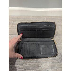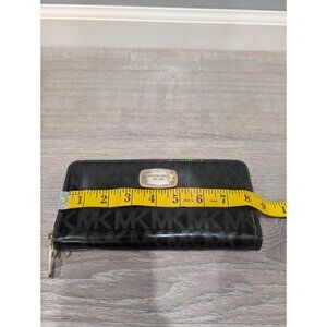 Michael Kors Wallet Classic Monogram Zip Around Black Patent Leather Wristlet