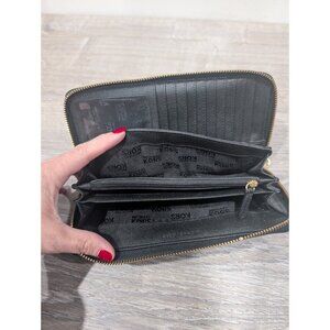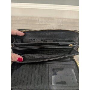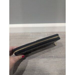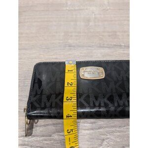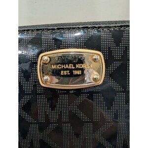 Michael Kors Wallet Classic Monogram Zip Around Black Patent Leather Wristlet. Please note the pictures for condition. There are a few small indents in the monogram area. I believe the wallet is patent leather, but I am not 100% sure. Also, the wristlet might not be the original one that came with the wallet. Please let me know if you have any questions. Thanks for looking!