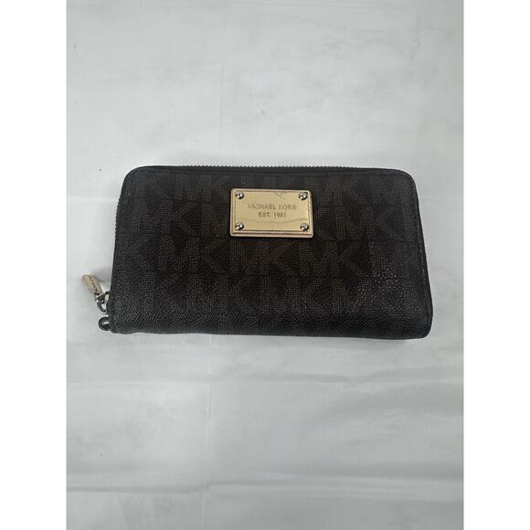 The Michael Kors Wallet in Logo Brown is a large leather wallet designed specifically for women. It features the iconic Michael Kors logo pattern in brown, both on the exterior and lining of the wallet. The hardware color is also brown, giving the wallet a cohesive and stylish look. Part of the Michael Kors Jet Set collection, this wallet is perfect for keeping your essentials organized in style.