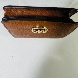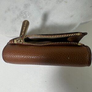 Michael Kors Tan Pebbled Leather Wallet MK Logo Snap Closure zipper Coin Pocket Unisex