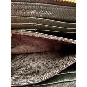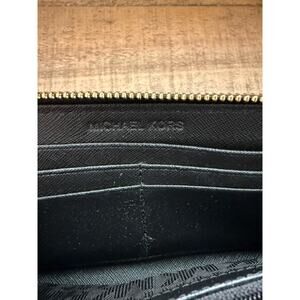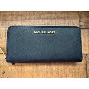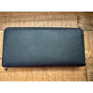 Michael Kors Wallet Women's Black Zip Around Saffiano Continental Gold Tone Logo