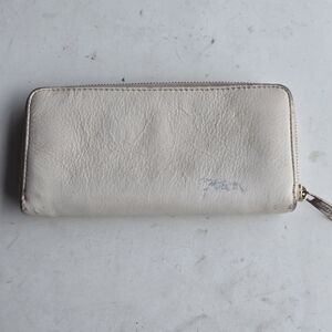 Michael Kors Wallet Womens White Gold Zip Around Logo Good Condition Flaw