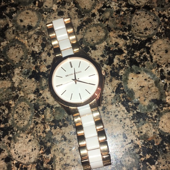 TELL TIME W| THIS GORGEOUS MICHAEL KORS WHITE + GOLD WATCH
