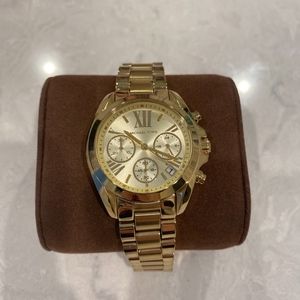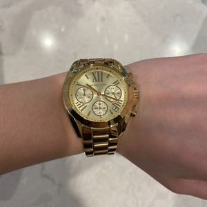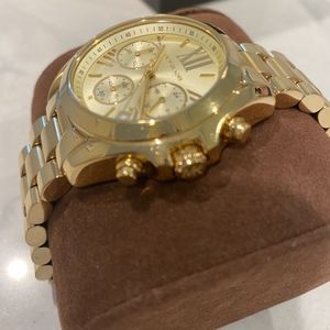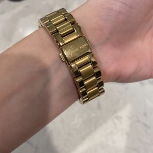 A gold Michael Kors watch that is pre owned but still in very good condition. Style: MK5798