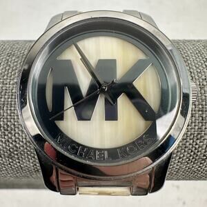 Michael Kors Watch Womens 38mm Runway Alabaster Silver Tone Logo New Battery