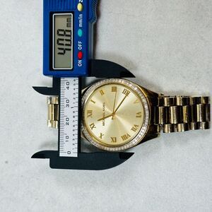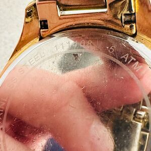 Red discoloration near one of the crystals, scuffs/scratches on crystal. Metal band and case have scratches/scuffs/metal wear. Please see all photos for detailed condition and measurements.