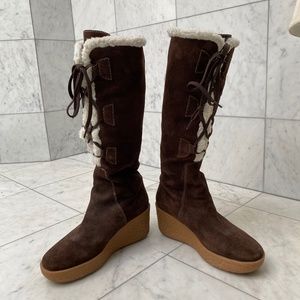 Michael Kors Wedge Boots Sherpa Lined Size 7.5