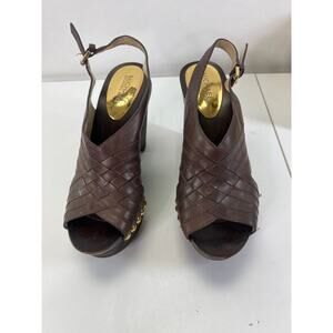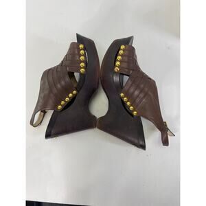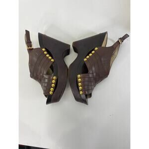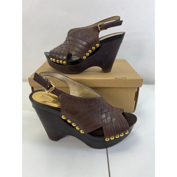 Michael Kors Wedge Sandals Gold Studs Chocolate Brown 8.5