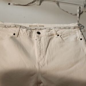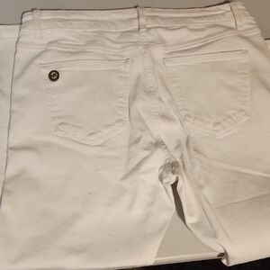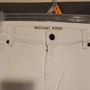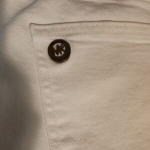 These Michael Kors white capris offer a chic and contemporary look, perfect for any casual outing. Crafted with a smooth finish, they provide a crisp and clean appearance that complements a variety of styles. Ideal for warm weather, these capris are a versatile addition to your wardrobe.