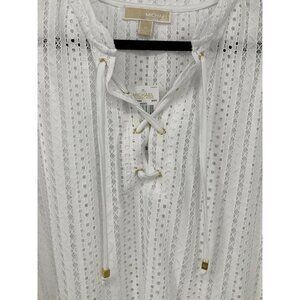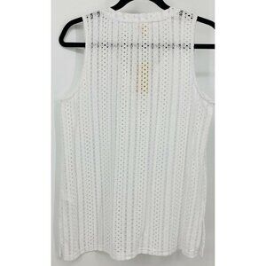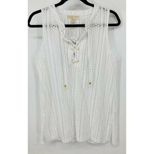 A women's white eyelet top from Michael Kors. The top is sleeveless, lace v-neck, and top is new with tags.