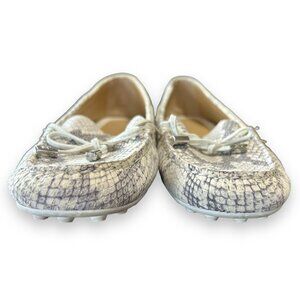 Michael Kors White Gray Snake Print Leather Loafers slip on bow