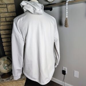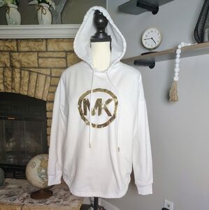 Classic white hoodie featuring bold MK logo. Ideal for casual wear. Comfortable and stylish.