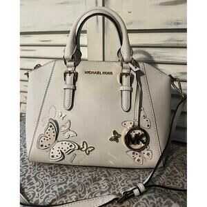 Michael Kors White Leather Handbag Butterfly Embellish NWOT