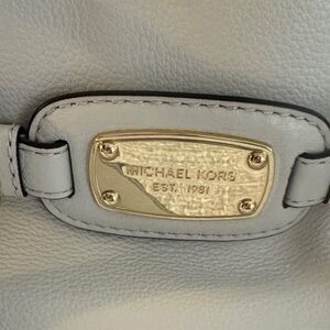Chic Michael Kors shoulder bag in off white leather. Features gold-tone hardware. Perfect for everyday use. Extra Large Bag, Excellent Condition inside and out.