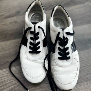 Michael Kors White Leather Sneakers Low Top Black Accent Size 8.5M