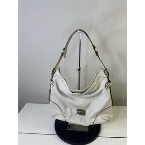 The Michael Kors White Leather Tote Bags are stylish and luxurious accessories designed for women. Featuring a metallic gold exterior color with a canvas lining, these tote bags are perfect for adding a touch of glam to any outfit. The strap closure adds convenience and functionality to the chic design, making them a practical yet fashionable choice for everyday use. Made with high-quality materials and a signature metal theme, these tote bags are a versatile and trendy addition to any wardrobe.
