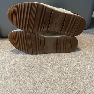 Stylish Michael Kors sneakers with monogram design. Comfortable and trendy. Perfect for casual wear.