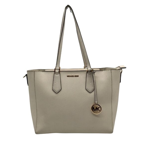 Michael Kors White Pebbled Leather Large Top Zip Tote Bag