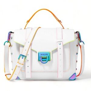 Michael Kors White Satchel/Sholder Bag with Neon Accents