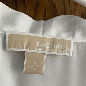 Chic blouse by Michael Kors. Versatile and stylish. Elastic drop waist with tie. Shown smal imperfections to keep blouse more modest