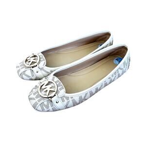 Michael Kors White Tan Monogram Flats Sz 6.5