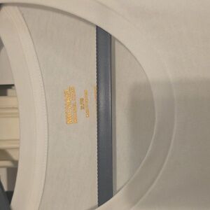 Chic white tee with gold accents. Features iconic MK logo. Ideal for everyday style.