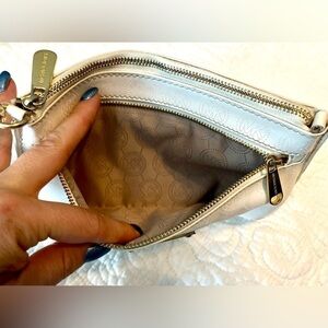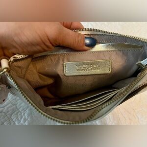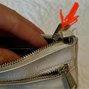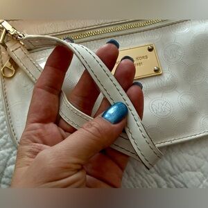 Chic white designer wristlet in very good condition. Can easily fit 2 phones, keys and a lip gloss:)