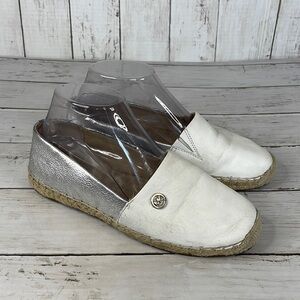Michael Kors White and Silver Leather Kendrick Espadrille