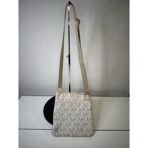 The Michael Kors White signature Snap Crossbody bag is a stylish and versatile accessory for women. Made from sleek leather in a classic white color, this crossbody bag features a secure snap closure and is designed to be worn on the go. The iconic Michael Kors branding adds a touch of luxury to this practical yet fashionable handbag. Perfect for everyday use, this bag combines functionality with high-end style.